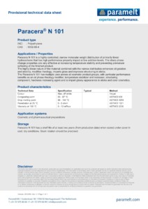 The Paracera® N 101 is specifically designed with controlled chemistries and molecular weight distribution to optimize the delivery of their properties in decorative cosmetics. The key performance impacts are: